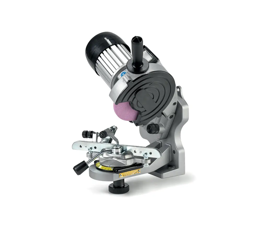 Tecomec a mis l’accent sur l’ergonomie avec une conception compacte et stable qui facilite le travail, même lors d’affûtages répétés. Le système de serrage rapide permet un positionnement précis de la chaîne et un maintien ferme sans effort. Son design intègre également un écran de protection transparent et un éclairage LED intégré, assurant une excellente visibilité de la zone de travail en toute sécurité.
